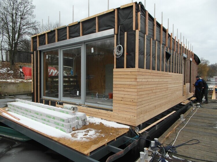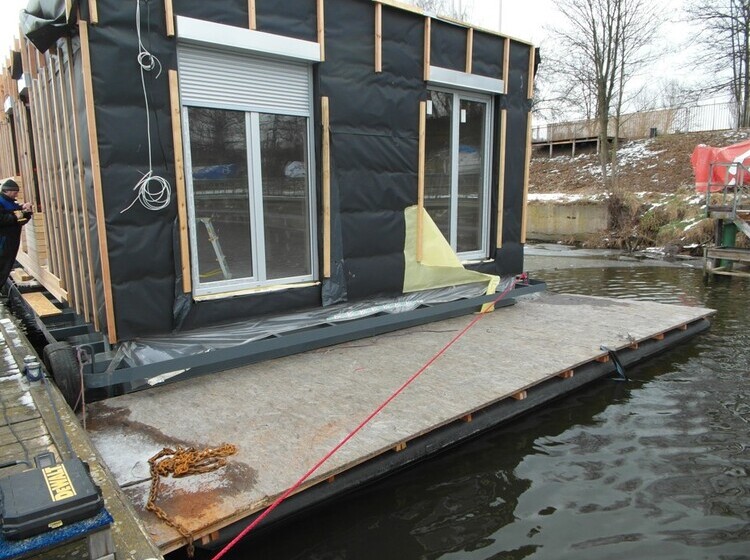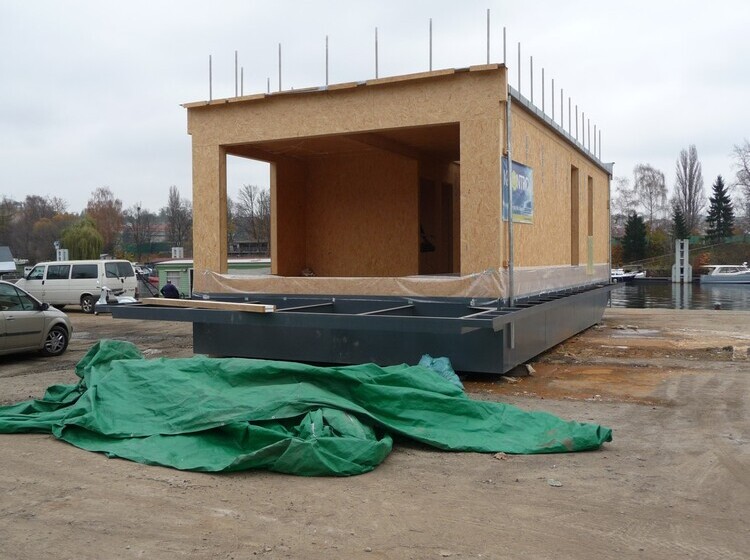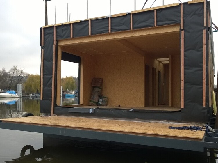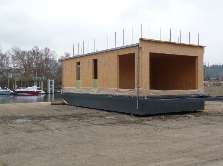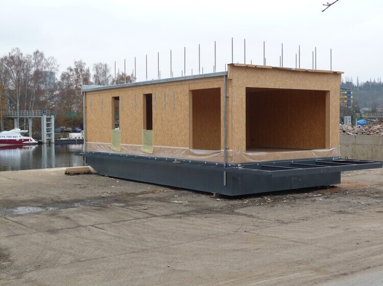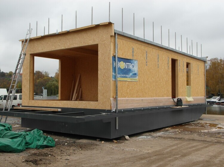 Stavíme další Hausbót ze systému K-KONTROL a dřevěných lepených nosníku I-OSB v Praze, Smíchov.