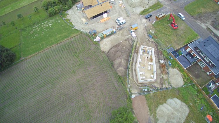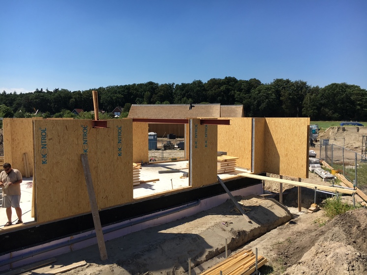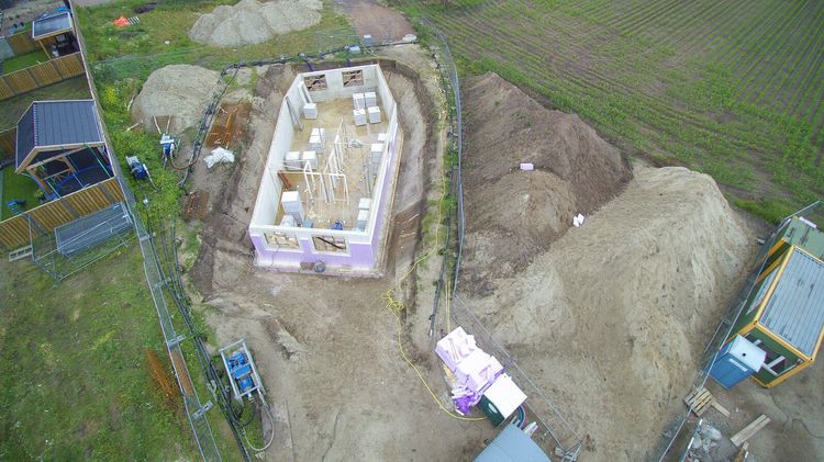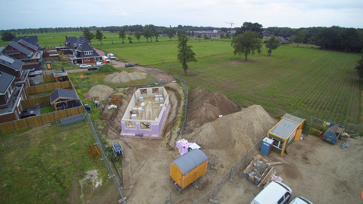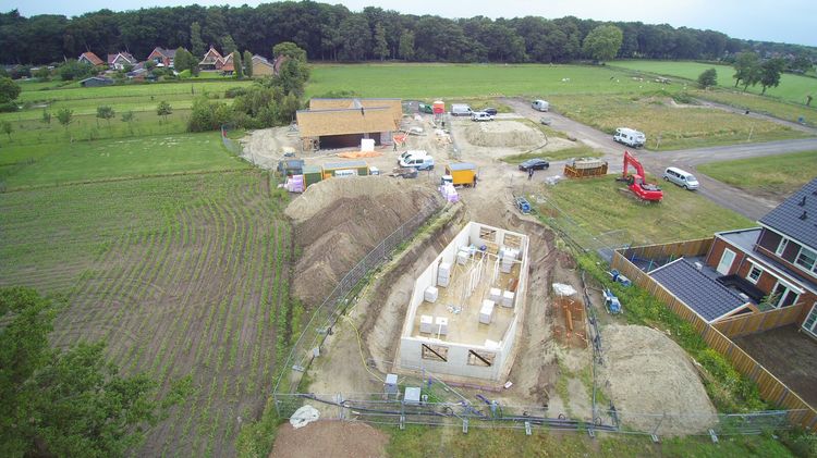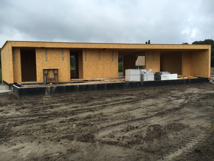 Stavba atypického rodinného domu v Holandsku město Rijssen. Jednopodlažní dům ze stavebního systému K-KONTROL s obytným suterénem.