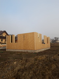 Na ukotvené impregnované zakládací pražce byly osazeny obvodové panely K-KONTROL v tl. 170mm, které jsou mezi sebou prolepeny a prošroubovány dle technologického postupu montáže systému K-KONTROL. Dveřní a okenní otvory jsou ...