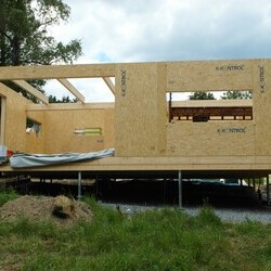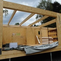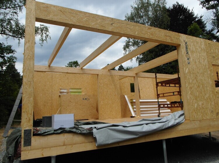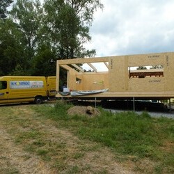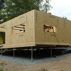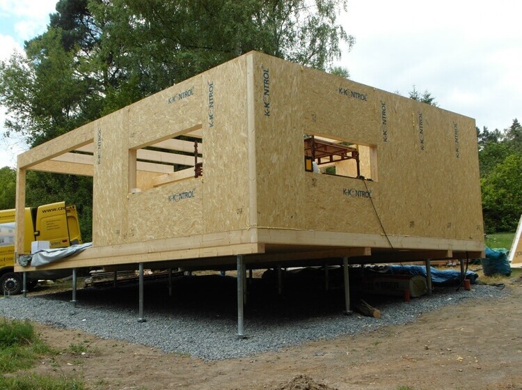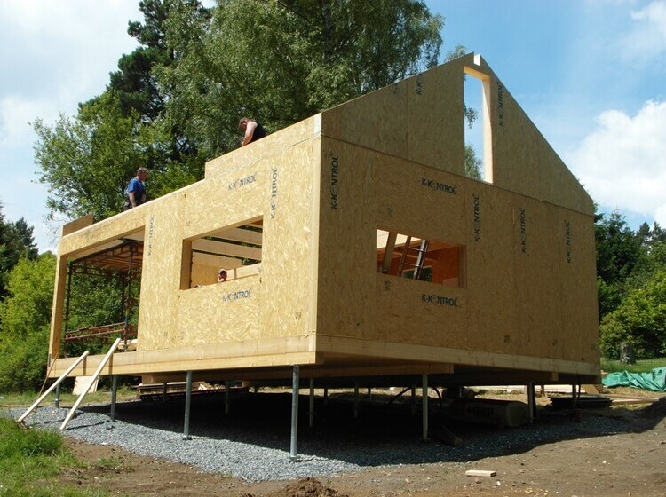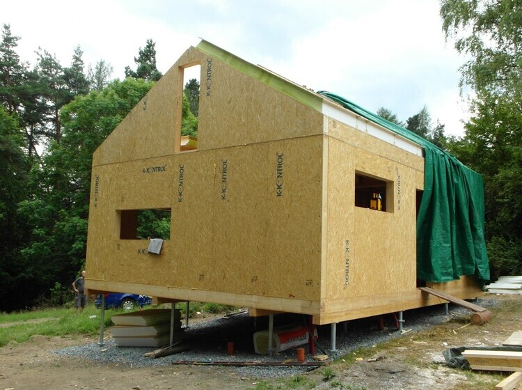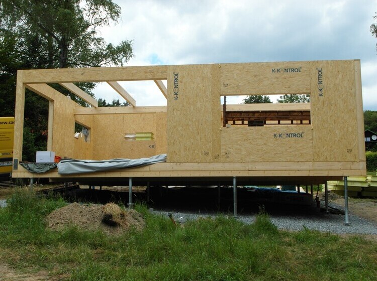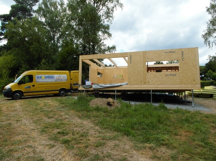 Stavba rekreačního domu uprostřed sázavských lesů. Dům je postaven na zemních vrutech s podlahou z panelů K-KONTROL.