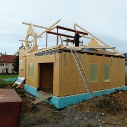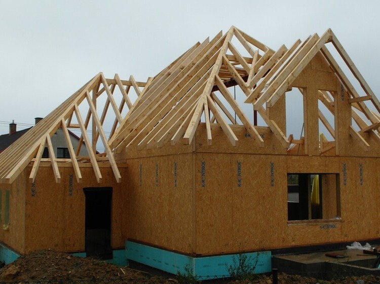 K-KONTROL. Dům se vyznačuje svojí členitostí a nestandardním vzhledem. Pro stropní konstrukci jsou využity I-OSB nosníky.