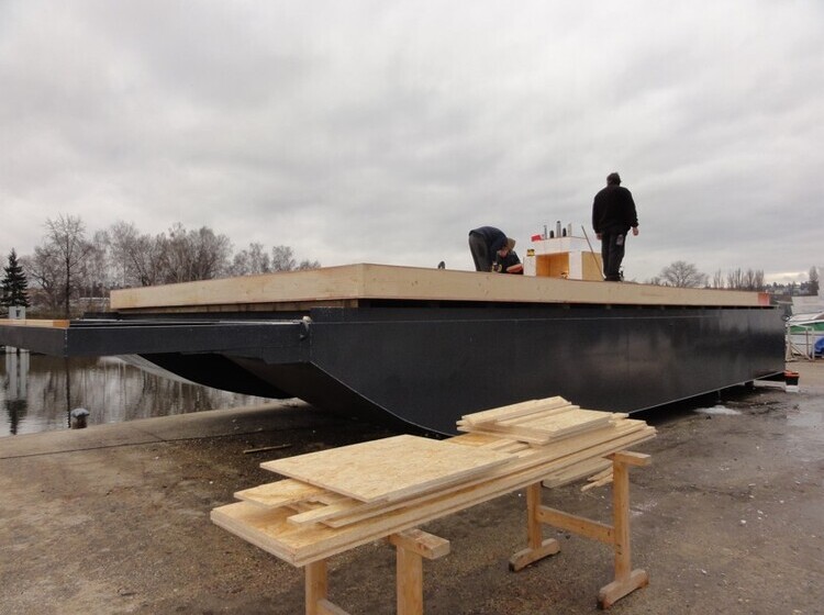 Stavba Hausbótu - konstrukce plováku |