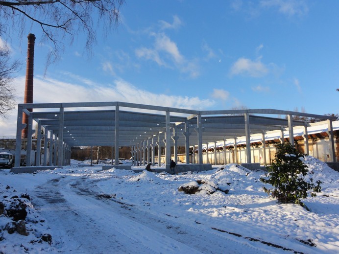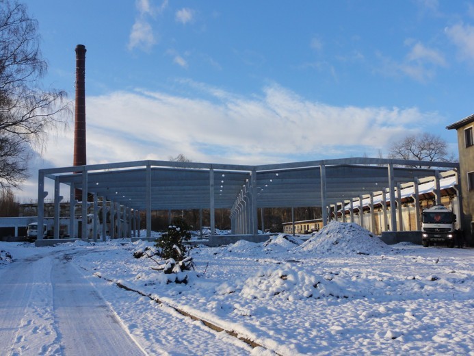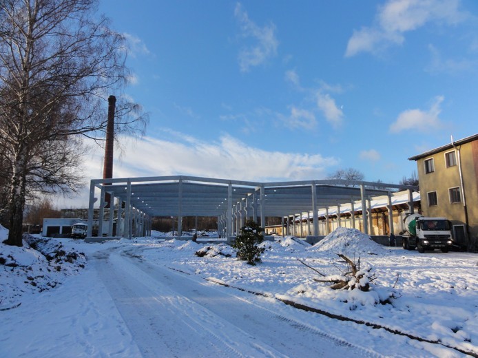 Náhled nové výrobní haly v areálu společnosti CZECH PAN. Hala bude sloužit k nové výrobní technologii celostěnových panelů.