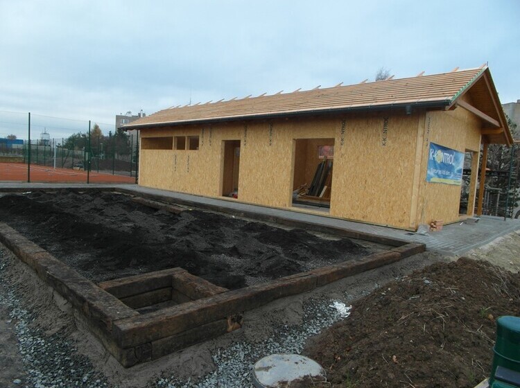 Novostavba tenisového zázemí ve Slaném, ze systému
