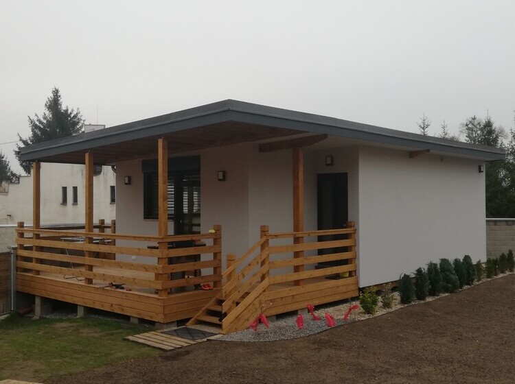 Ukázka jednoduchého bydlení pro mládí i stáří: Vejminek z K-KONTROL stavebního systému na okraji Prahy.