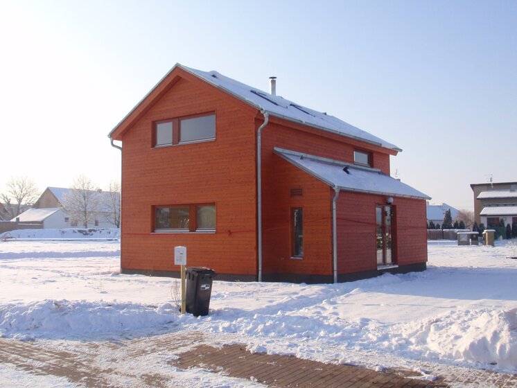 RD je navržen jako dřevostavba ze systému K-KONTROL, jednopatrová se sedlovou střechou a pultovou střechou nad vstupní částí, fasáda obložena profily z tepelně upraveného dřeva Lunawood, krytina plechová profilovaná - Maxidek.