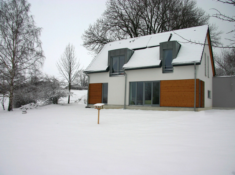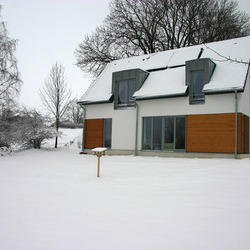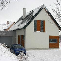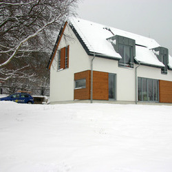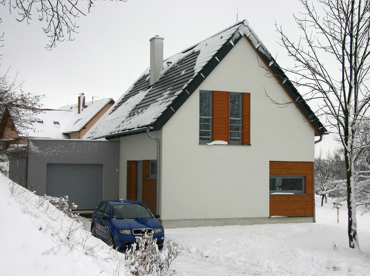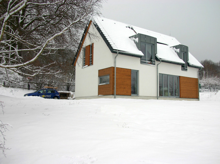 Rodinný dům ve Varnsdorfu, dle individuálního projektu s využitím střešním panelů ze systému K-KONTROL. I přesto, že se nejedná o pasivní dům, náklady na energie jsou minimální.