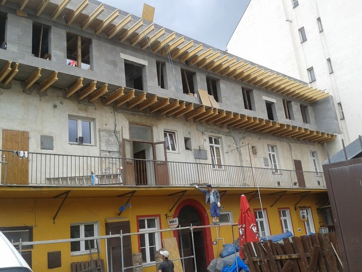 Current photo illustrating the reconstruction and extension of a block of flats in Prague using I-OSB beams.