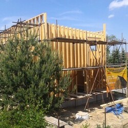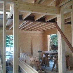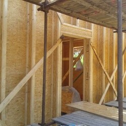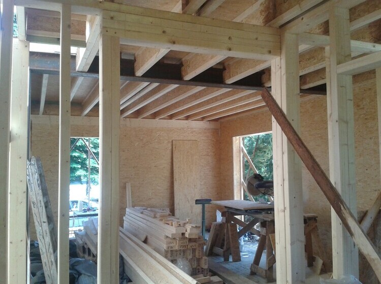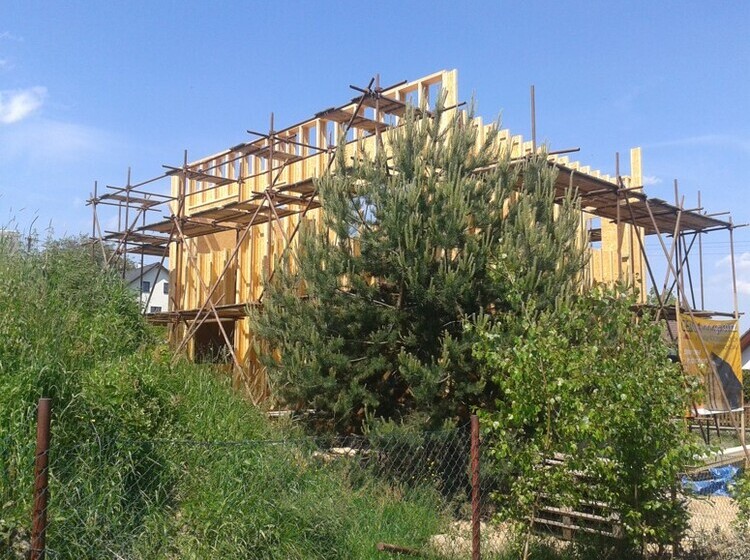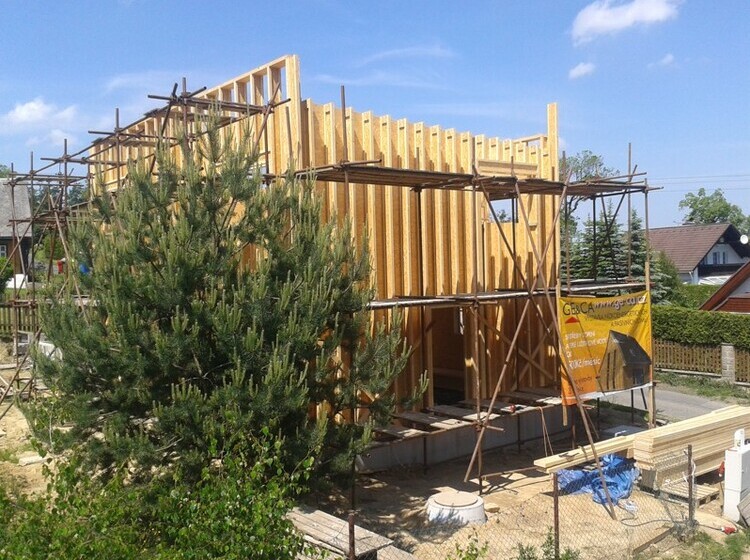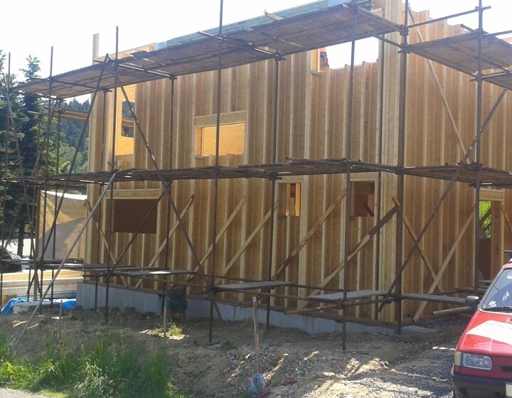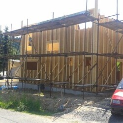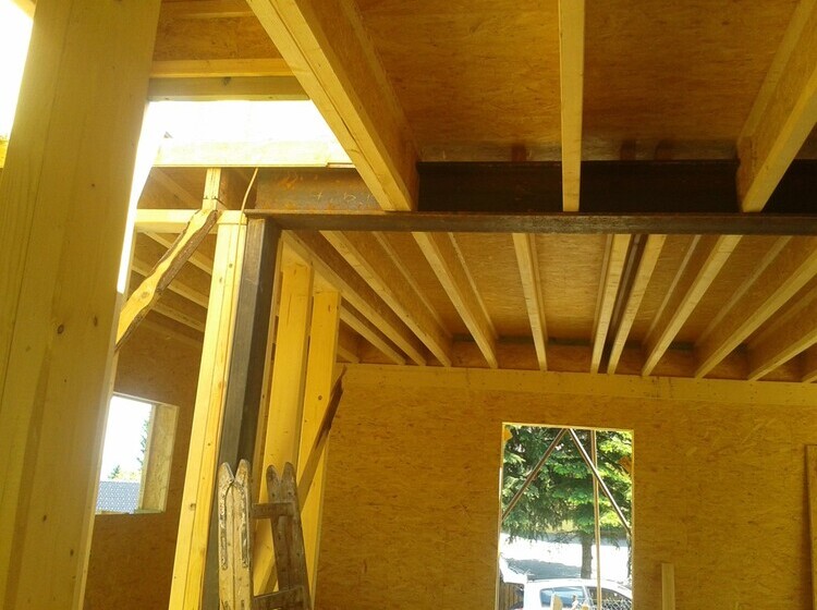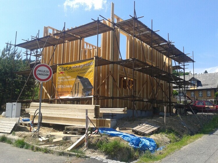 Delivery of a I-OSB beam and other construction material for a passive family house in Liberec.