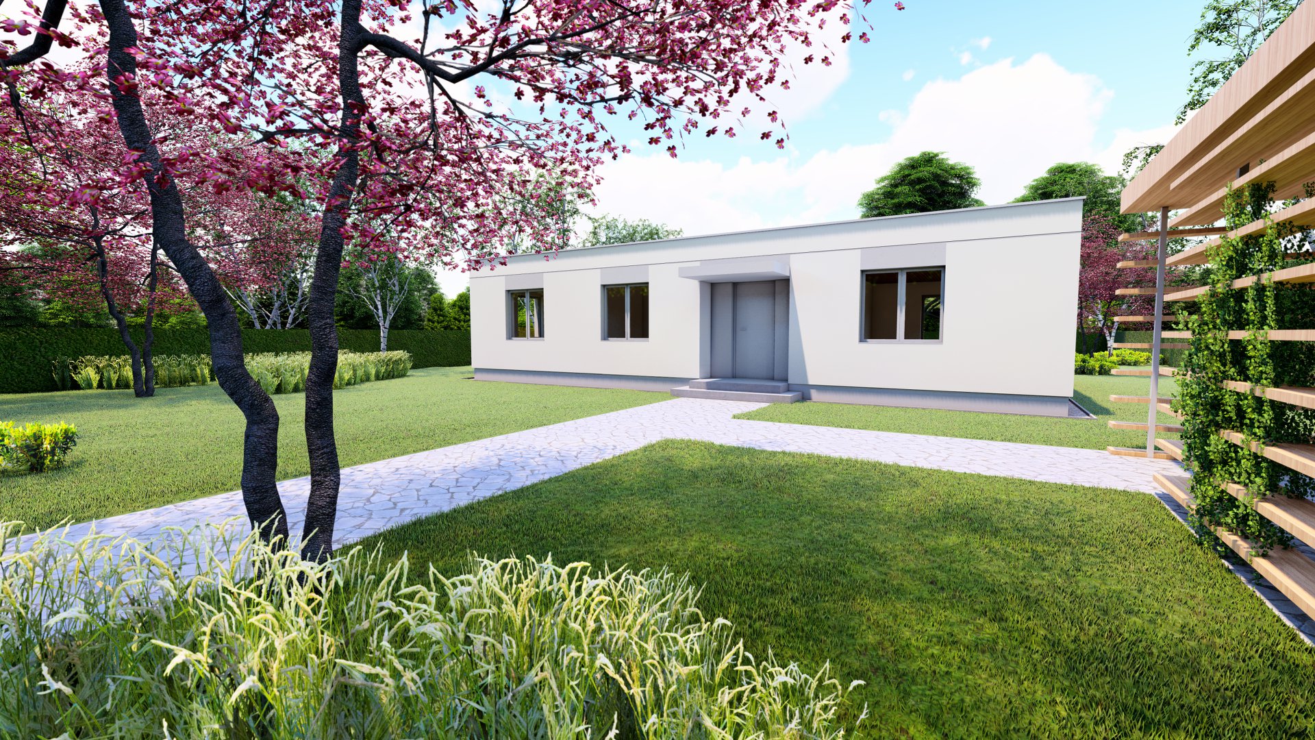 Rozšířili jsme nabídku velmi oblíbeného jednopodlažního rodinného domu Abies, který je ideální pro 3-4 člennou rodinu. Nová varianta s plochou střechou nabízí jednoduchý design. Rovná střecha nabízí další využití. Lze ji opatřit buď jako "zelenou-vegetační střechu" nebo i jako terasu. Návrh domu klade velký důraz na minimální investiční i provozní náklady.