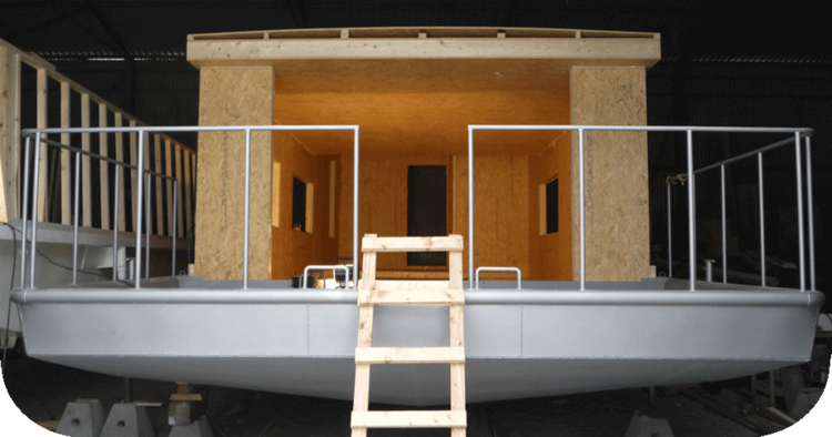Základní jednotkou systému K-KONTROL® je panel složený ze dvou OSB desek a izolační výplně ze stabilizovaného samozhášivého polystyrenu EPS. Z nich je téměř jako puzzle složena celá obytná část hausbótu – podlaha, stěny i stropy. Dřevostavba u prototypu Kronborg stojí na ocelové vaně. Konstrukce však může být posazena i na plováky nebo jinou základní desku, například na kůly, betonovou vanu či trup staré vyřazené lodi.