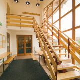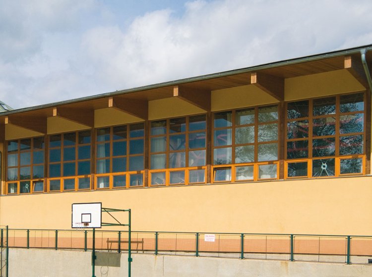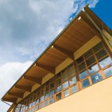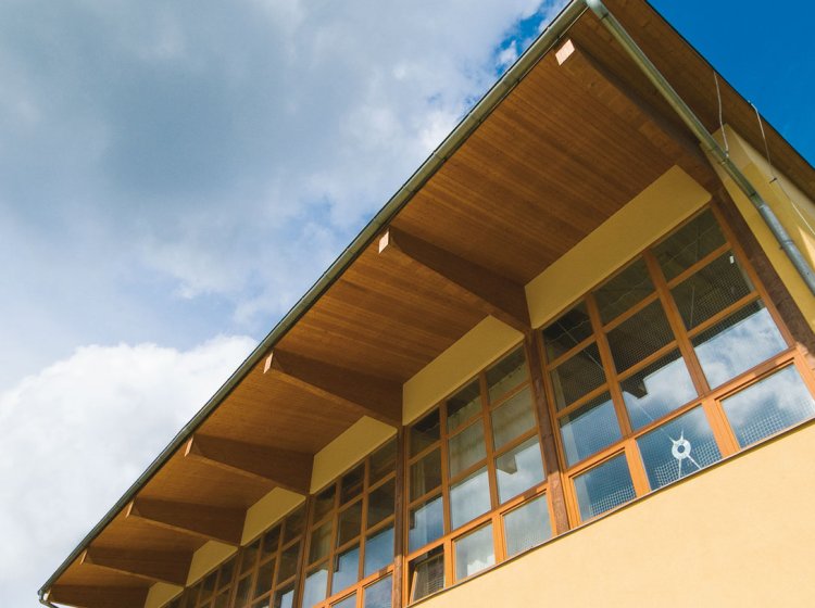 - ztužení haly v příčném směru je zabezpečené tvarem rámu, v podélném směru je ztužení zabezpečeno buď vlastním obvodovým pláštěm nebo v případě otevřených přístřešků pomocí diagonálního zavětrování z dřevěných nebo ocelových profilů