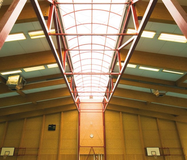 Haly s trojkloubovými rámy z desek OSB jsou dřevěné konstrukce určené pro vytvoření velkoprostorových objektů. Mohou být použity jako tělocvičny, výrobní haly, skladové přístřešky a sportovní objekty. Jsou zvlášť vhodné do prostor, kde se vyžaduje odolnost vůči agresivním látkám, které ohrožují ocelové a železobetonové konstrukce.