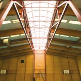 - štítové stěny se osazují na štítové sloupy, které jsou orientovány kolmo na rámy a zachytávají účinky větru ve směru haly