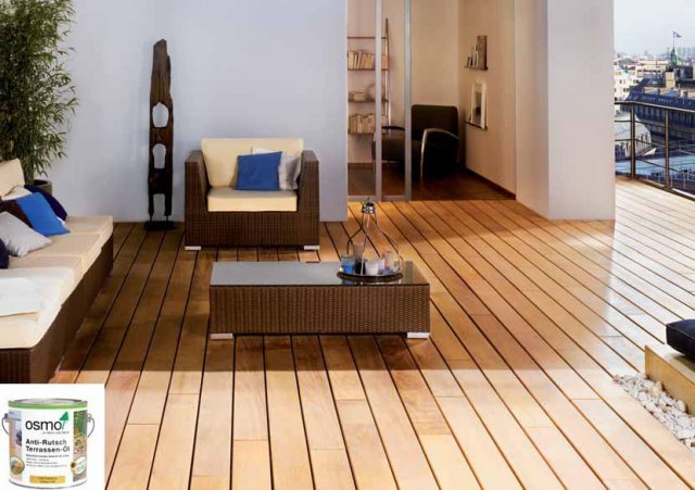 Osmo PROTISKLUZN� terasov� olej bezbarv� polomatn� n�t�r d�evo na venkovn� pou�it� s mnohostrann�m vyu�it�m vyroben na b�zi p��rodn�ch olej� s otev�en�mi p�ry Neodlupuje se, neprask� a netvo�� �upiny Jako kone�n� n�t�r na ji� barevn� upraven� d�evo dost�n� ve velikostech balen� 0,75l, 2,5l 25l. 1 litr sta�� na cca 24m2 p�i jednom n�t�ru